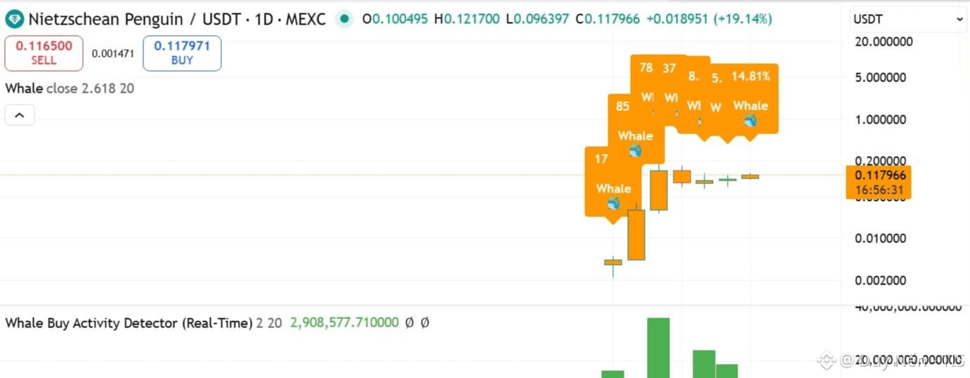 Sau khi bị xả từ đỉnh 0.16 đô xuống 0.06 đô, phe mua đã quay lại đỡ giá cực khéo tại vùng 0.10 đô. Hiện tại PENGUIN giao dịch ở mức 0,12 đô la, tăng gần 40% trong ngày. Vốn hóa thị trường của nó tăng 35% lên 119m USD, báo hiệu dòng vốn vào ổn định.