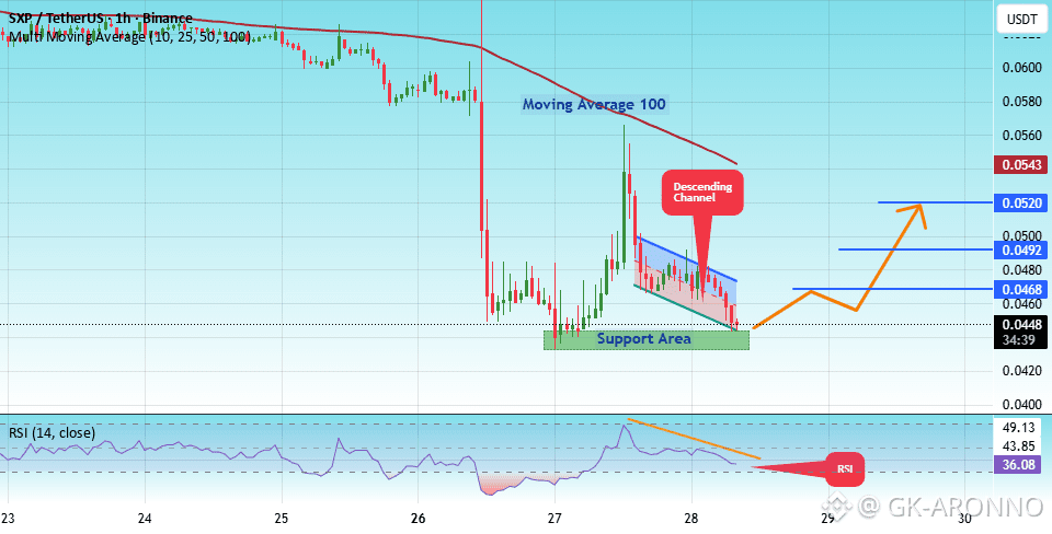There is a key support zone in green at 0.0440. The price has bounced from this level several times and is expected to bounce again.