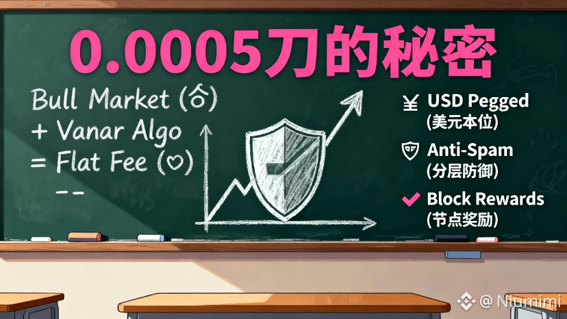 哪怕明天 $VANRY 涨 100 倍,你在链上交互一次,依然只要 0.0005 美元。这听起来违背经济学常识?别急,今天我就带你拆解这套让以太坊都眼红的“动态平衡算法”。