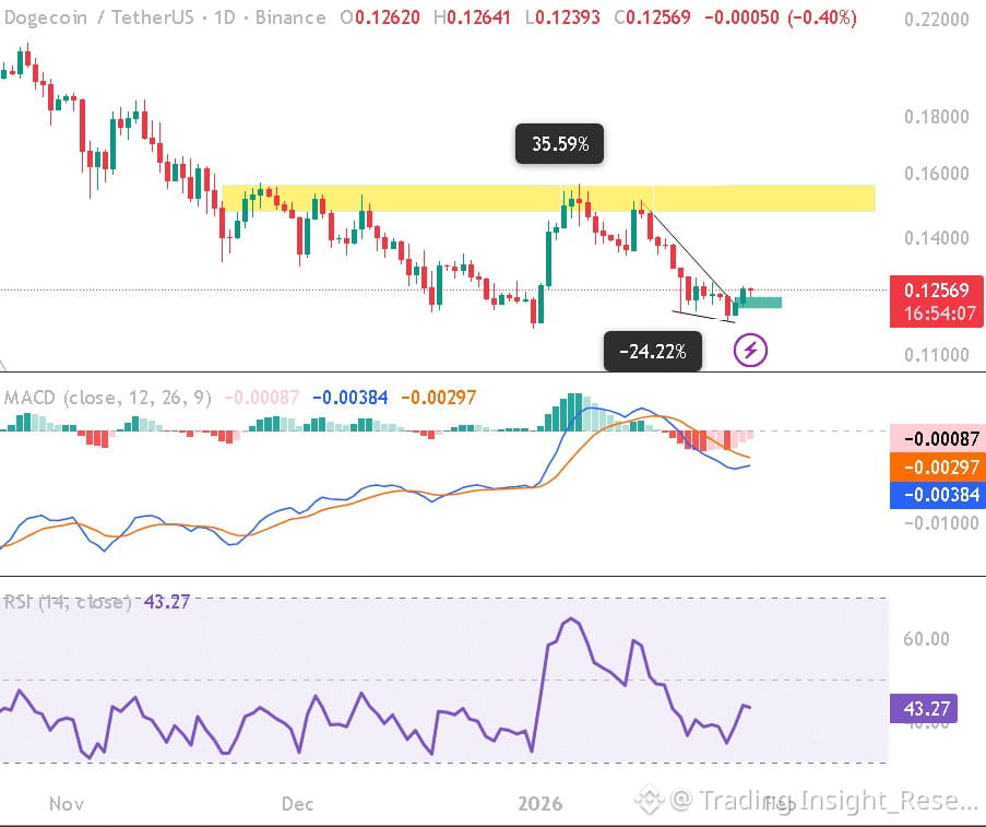 $DOGE đã phá vỡ xu hướng giảm sau nhịp điều chỉnh 24%, ổn định lại sau đợt tăng giá 35% ấn tượng trong tháng 1. Dù cú sụt giảm từ đỉnh $0.155 khá mạnh, cấu trúc tăng vẫn được bảo toàn, và trader đang dán mắt vào điểm xoay chiều quan trọng.