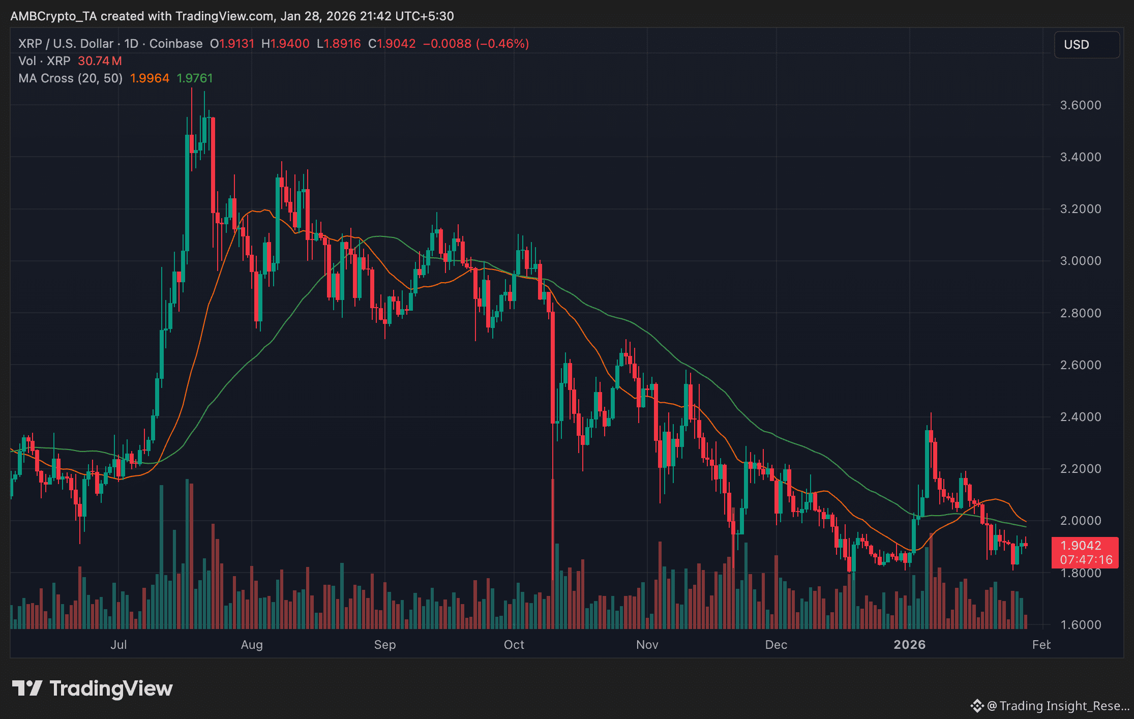 XRP đang giao dịch quanh vùng $1.90 – $1.95, thất bại trong việc tái chiếm mốc tâm lý $2.00.