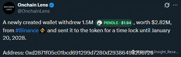 Một ví cá voi mới ("0xd28") đã rút 1.5 Triệu PENDLE khỏi Binance.