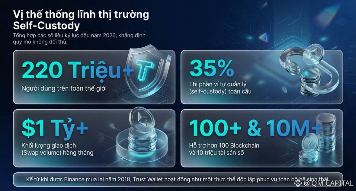 Anh em có để ý thấy dòng tiền đang âm thầm rời khỏi các sàn giao dịch để tìm về nơi trú ẩn an toàn hơn không? QM CAPITAL vừa tổng hợp bộ dữ liệu "khủng" cho thấy Trust Wallet đang thống trị tuyệt đối mảng Self-custody trong năm 2026 này!
