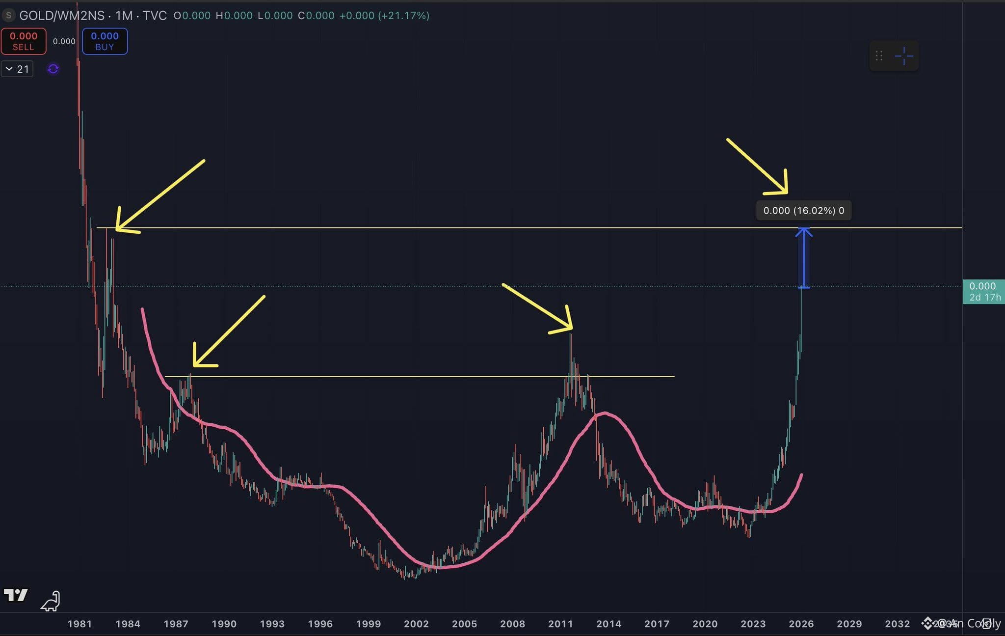 Dù hôm nay vàng đã lên 5,600 USD/oz, nhưng vì tiền được in ra nhanh hơn rất nhiều nên 1 ounce vàng hiện nay có sức mua THẤP hơn khoảng 16% so với năm 1982 khi đo bằng quy mô tiền.
