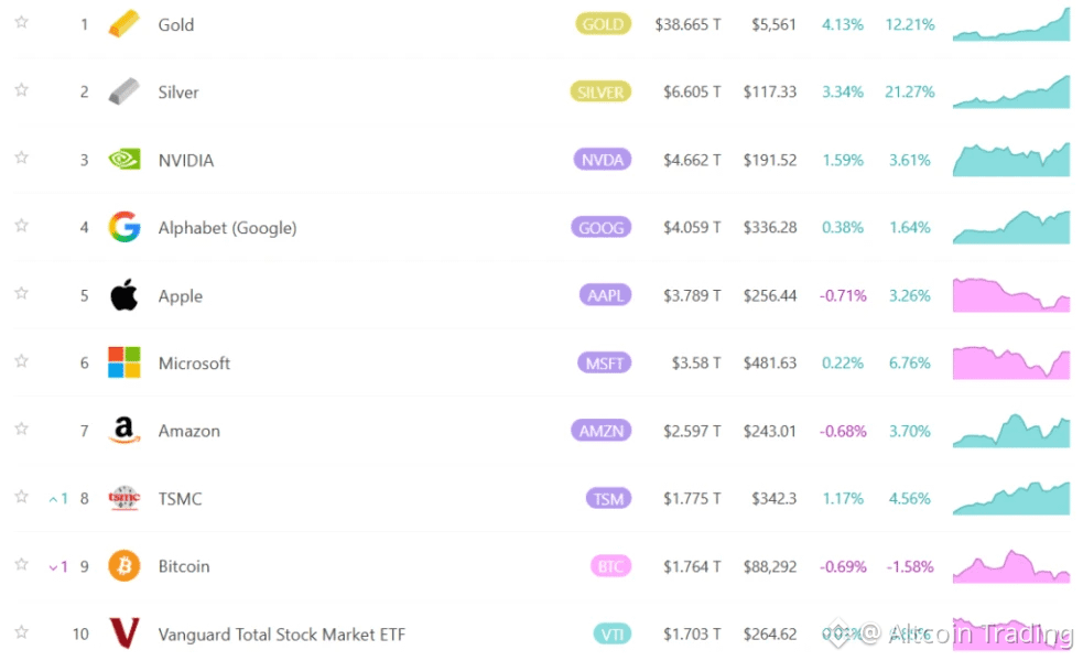 Серебро также показало рост, подорожав на ~22% за последнюю неделю. Его капитализация составила $6,6 трлн.