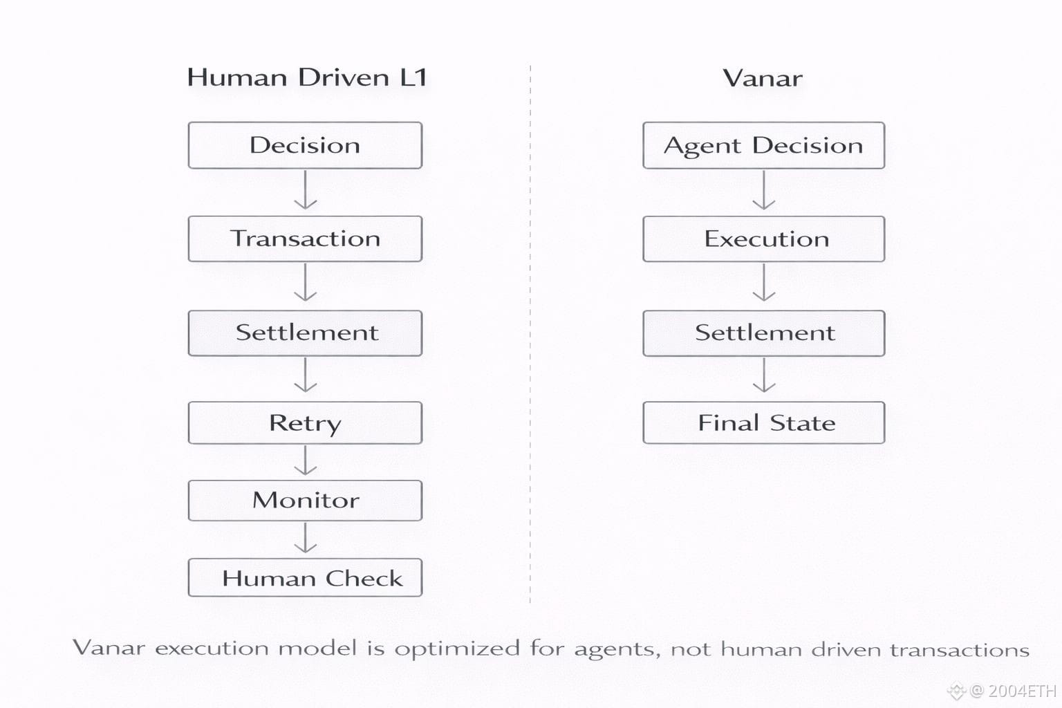 Vanar starts from the idea that execution will increasingly be driven by software agents. These agents do not pause, monitor dashboards, or adjust behavior based on changing conditions. They execute based on predefined logic and expected outcomes.