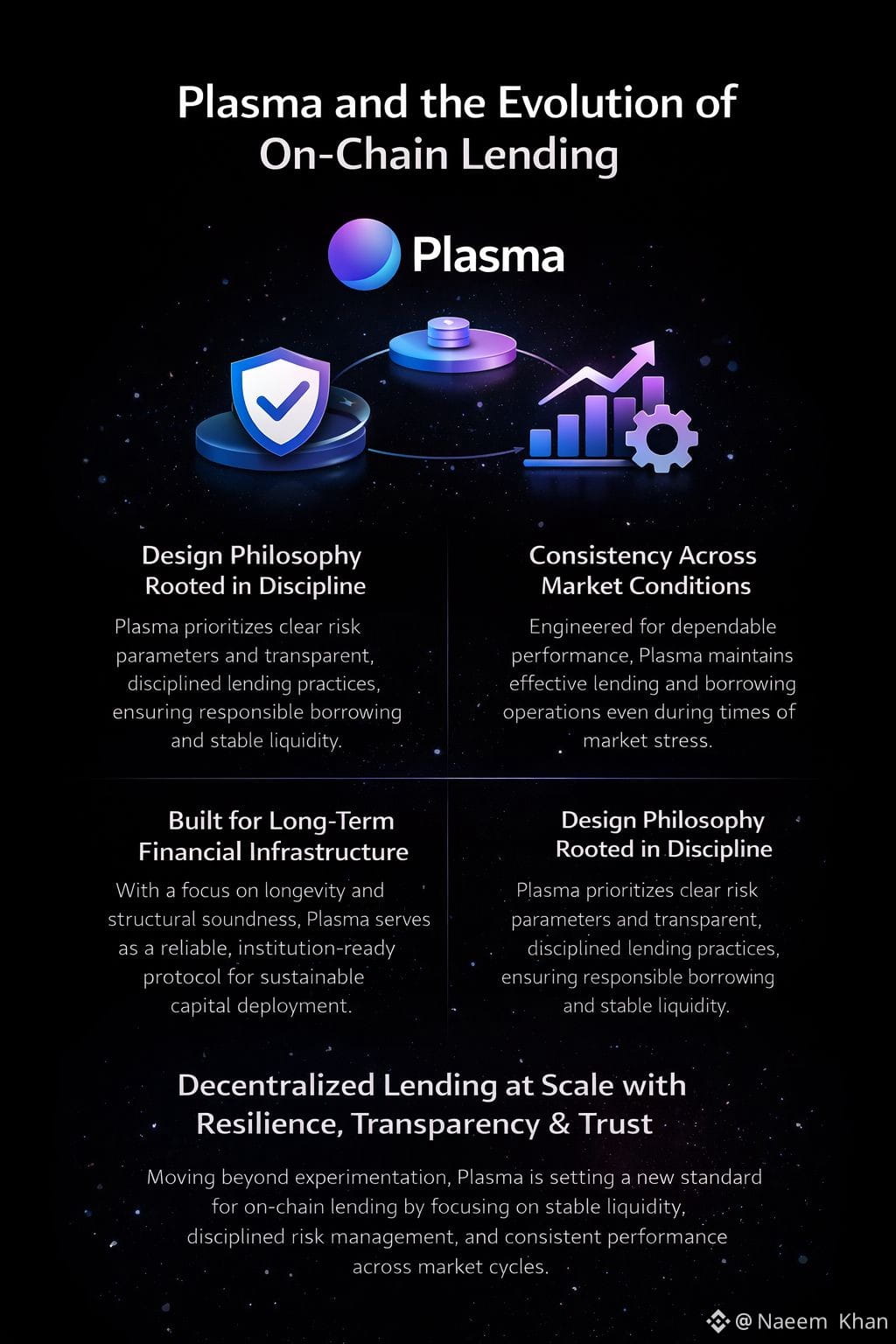 Decentralized finance has moved far beyond its experimental phase. What once began as simple peer-to-peer lending has grown into a complex financial ecosystem that demands precision, reliability, and trust. Plasma enters this landscape not as a protocol chasing attention, but as one designed to refine how on-chain lending should function at scale. Its focus is not only on enabling borrowing and lending, but on shaping behavior, reducing systemic stress, and creating an environment where capital can move predictably across market cycles.