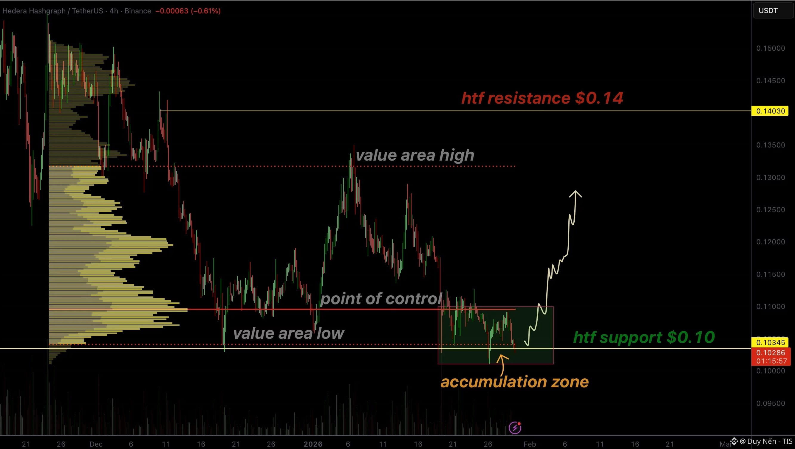 SL: Kịch bản này chỉ hiệu nghiệm khi HBAR giữ được mốc $0.10. Nếu thủng rách mốc này thì mô hình tích lũy thất bại, anh em nên cân nhắc thoát vị thế.