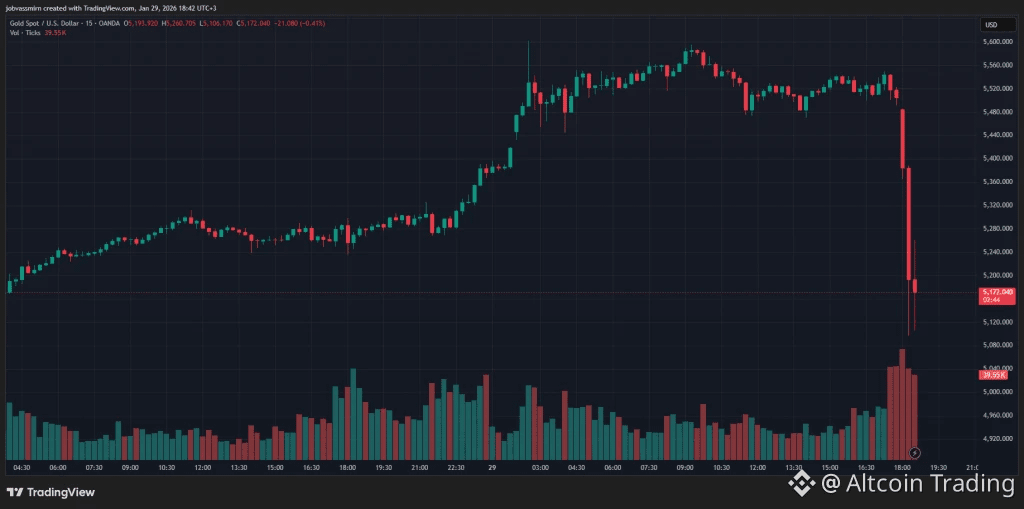 Незадолго до коррекции драгметалл достиг очередного исторического максимума на уровне $5600 за унцию. На момент написания актив торгуется около $5100.