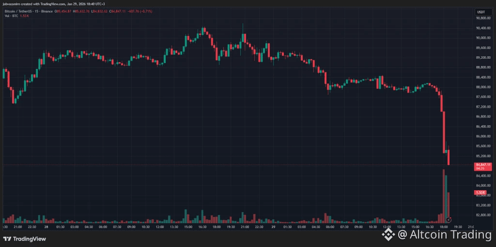 29 января $BTC резко обвалилась с $88 000 до $85 000, потеряв около 3,5%. Падение последовало за просадкой цены на золото.