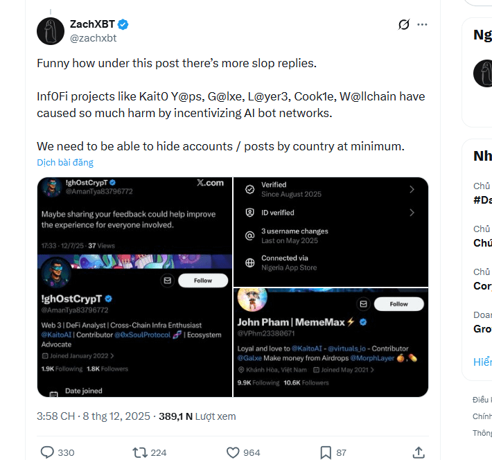 Gần đây X cũng đã khai tử xu hướng inforfi, các dự án như Kaito, Cookie,,..giảm mạnh.