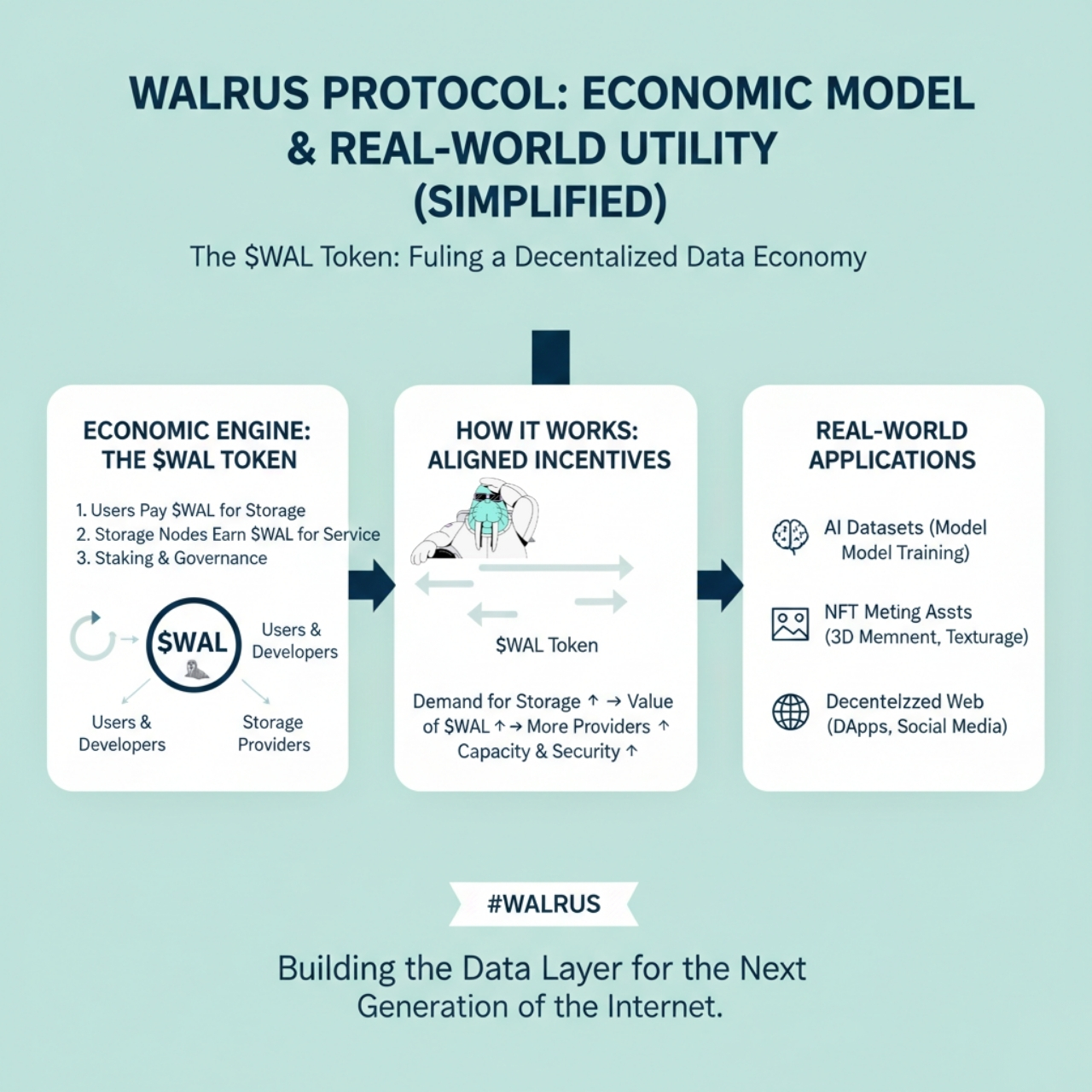 Cung cấp cho hệ sinh thái đổi mới này là $WAL token, đóng vai trò là động lực kinh tế cơ bản cho mạng lưới. Token được thiết kế để phù hợp với lợi ích của tất cả các bên tham gia, tạo ra một chu trình phát triển và bảo mật tự duy trì. Các nút lưu trữ được khuyến khích cung cấp phần cứng và băng thông chất lượng cao vì họ được thưởng bằng $WAL cho những đóng góp của mình. Đồng thời, người dùng và nhà phát triển sử dụng token để truy cập không gian lưu trữ và đảm bảo dữ liệu của họ có sẵn trên toàn mạng. Sự phù hợp kinh tế này đảm bảo rằng khi nhu cầu về lưu trữ tăng lên, mạng lưới tự nhiên mở rộng khả năng và bảo mật để đáp ứng nhu cầu đó.