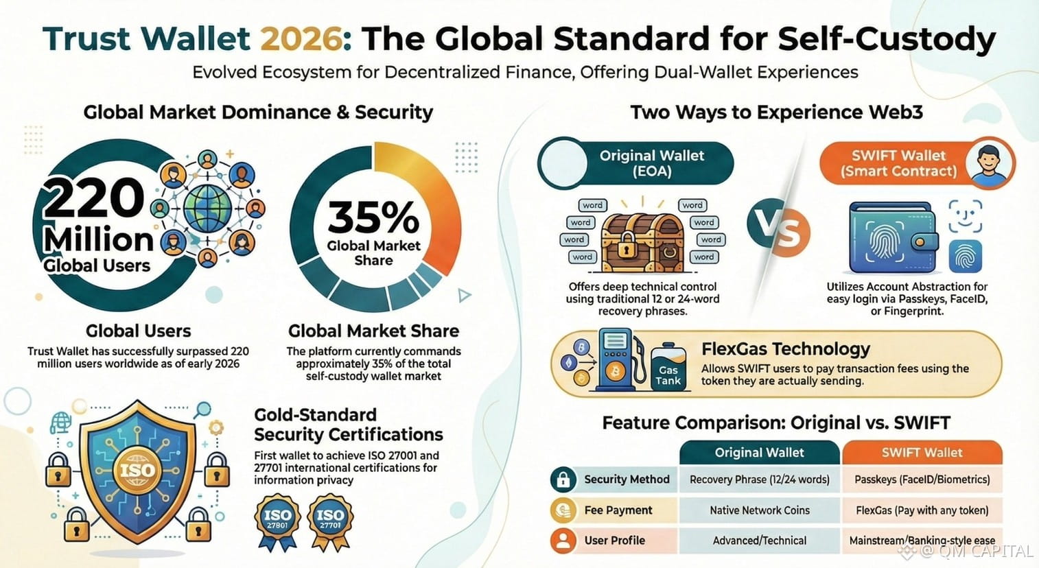 Toán học thay thế tổ chức: Bạn sở hữu tài sản vì bạn giữ bằng chứng mật mã (cryptographic proof). Nếu Trust Wallet biến mất, bạn vẫn có thể dùng 12 từ khôi phục (seed phrase) để truy cập tài sản của mình trên bất kỳ ví tự quản nào khác như MetaMask hay Ledger.