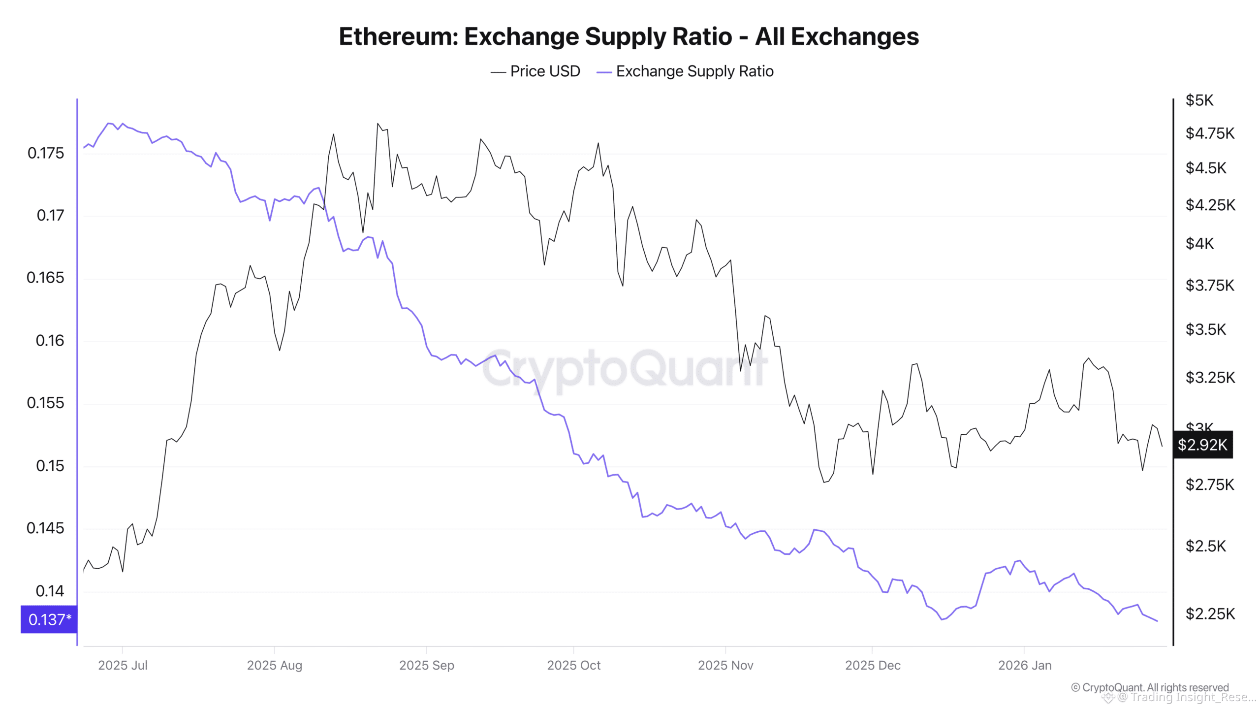 Tỷ lệ Cung trên Sàn đã giảm xuống 0.137, cho thấy thanh khoản bán đang cạn kiệt.