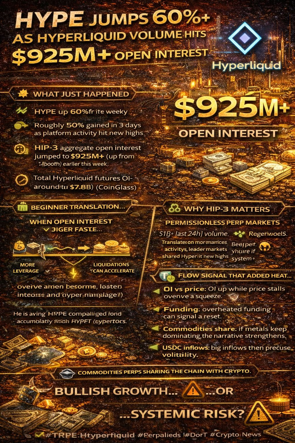 🚀 Tôi là Storiesofcoins — HYPE vừa tăng 60%+ trong một tuần trong khi các thị trường HIP-3 của Hyperliquid ghi nhận kỷ lục lãi mở mới $925M+. Đây là hình ảnh của một đợt tăng giá được điều khiển bởi hợp đồng phái sinh trong thời gian thực. (CoinMarketCap)