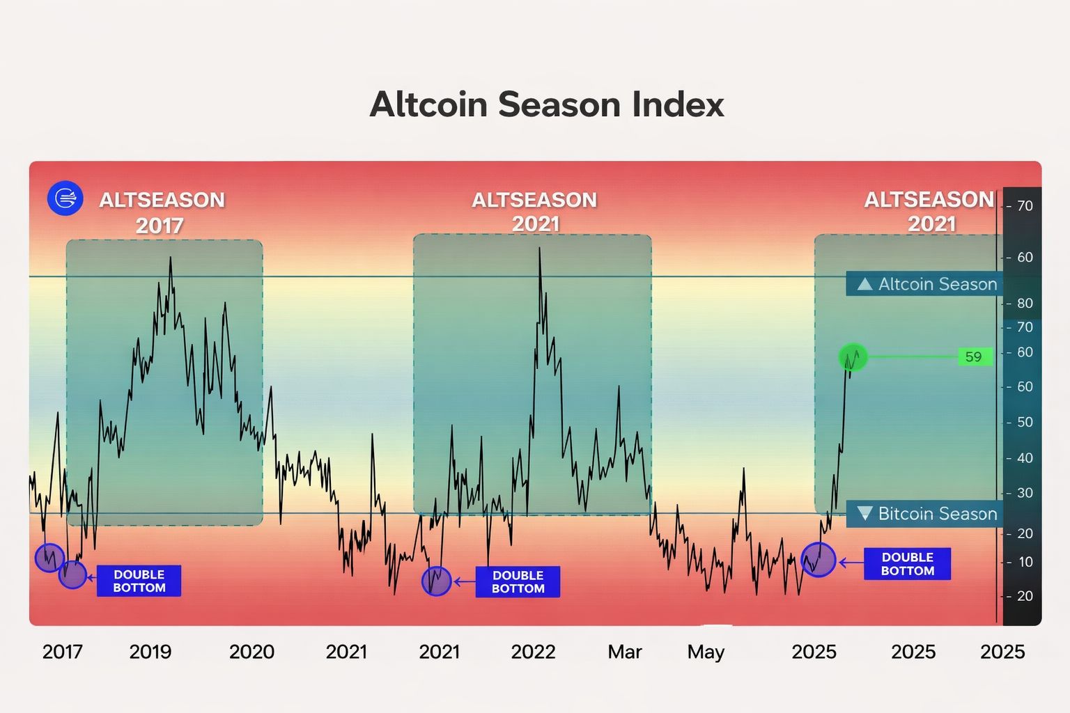 Nhìn từ bên ngoài, thị trường vẫn tương đối tích cực: giá ở mức cao, thông tin hỗ trợ xuất hiện dày đặc và câu chuyện “altcoin season” được nhắc đến rộng rãi. Tuy nhiên, các tín hiệu trên khung thời gian lớn lại cho thấy một góc nhìn thận trọng hơn.