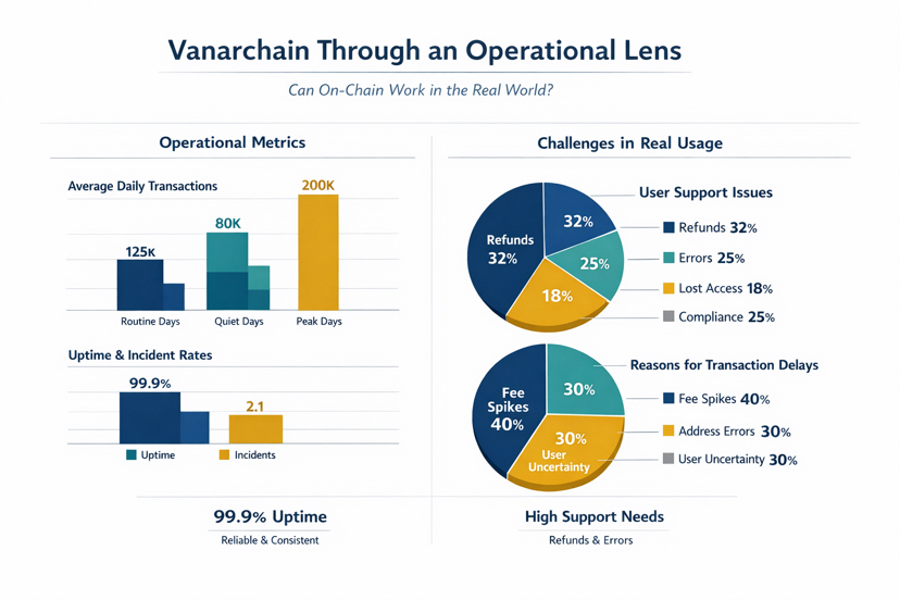 Nếu Vanarchain nghiêm túc về việc sống ngoài các vòng tròn tiền điện tử, chuỗi phải cảm thấy dễ hiểu, không chỉ với các kỹ sư, mà còn với các đội tài chính, các quản lý sản phẩm và các viên chức rủi ro. Nó phải chịu đựng được các đỉnh mà không trở nên không thể dự đoán, và nó phải xử lý các khoảng lặng mà không giả vờ rằng sự im lặng là sự phát triển. Một chuỗi chỉ trông đẹp trong một chiến dịch không phải là một cơ sở hạ tầng, nó là một di sản tiếp thị.