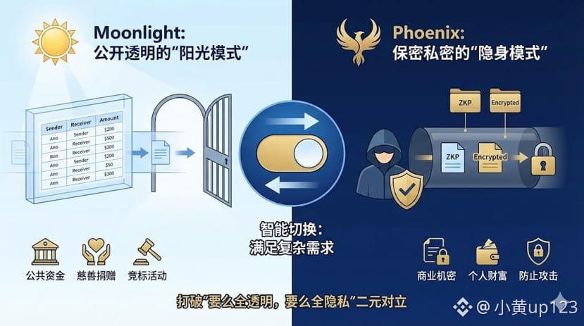 DUSK的Moonlight/Phoenix双交易模式不是技术炫技,而是对用户需求的深刻洞察。这种设计解决了传统区块链"要么全透明,要么全隐私"的二元对立问题。
