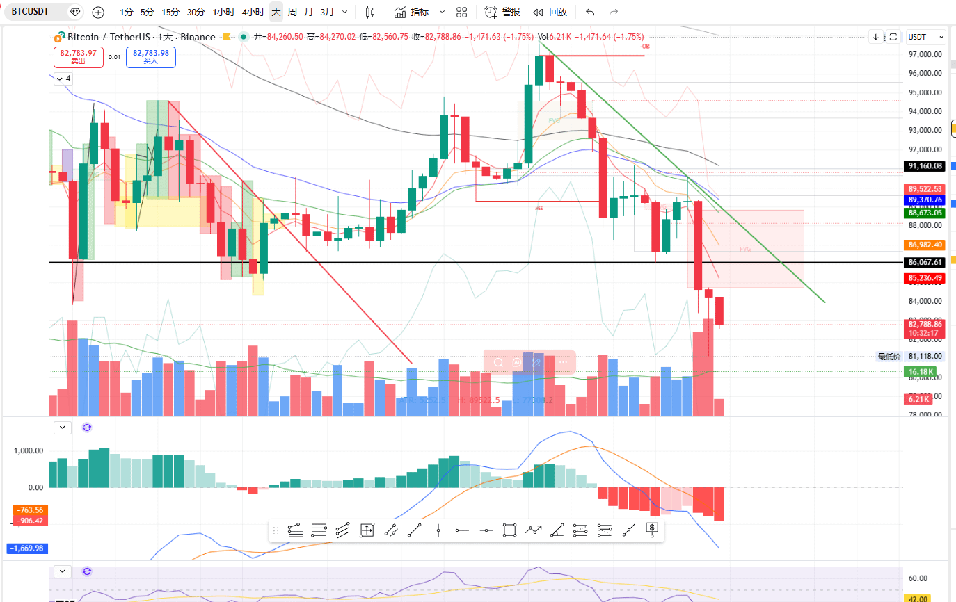 💡 Hiện tại đang trong xu hướng giảm, cần chờ tín hiệu ổn định từ vùng hỗ trợ, không nên mua vào mù quáng, Bitcoin vẫn đang trong giai đoạn “mài đáy”, việc giữ vững 80,000 USD là rất quan trọng, nếu giữ được sẽ có cơ hội phục hồi, nếu không sẽ còn phải “ngồi xổm”.
