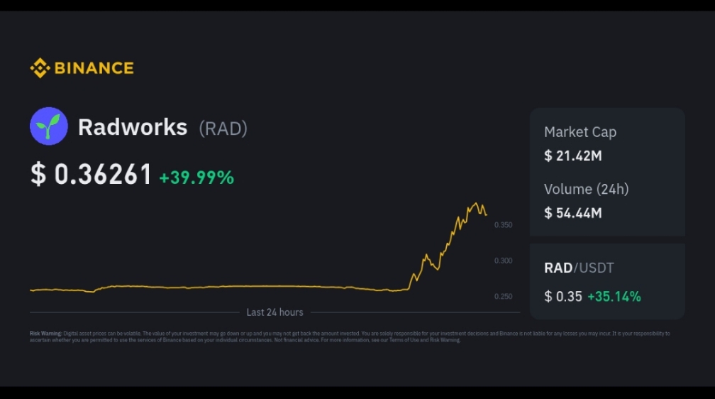 ➡️ RAD đang được giao dịch tích cực trên các sàn giao dịch lớn bao gồm Binance (RAD/USDT, RAD/TRY) và Coinbase cùng với những sàn khác.