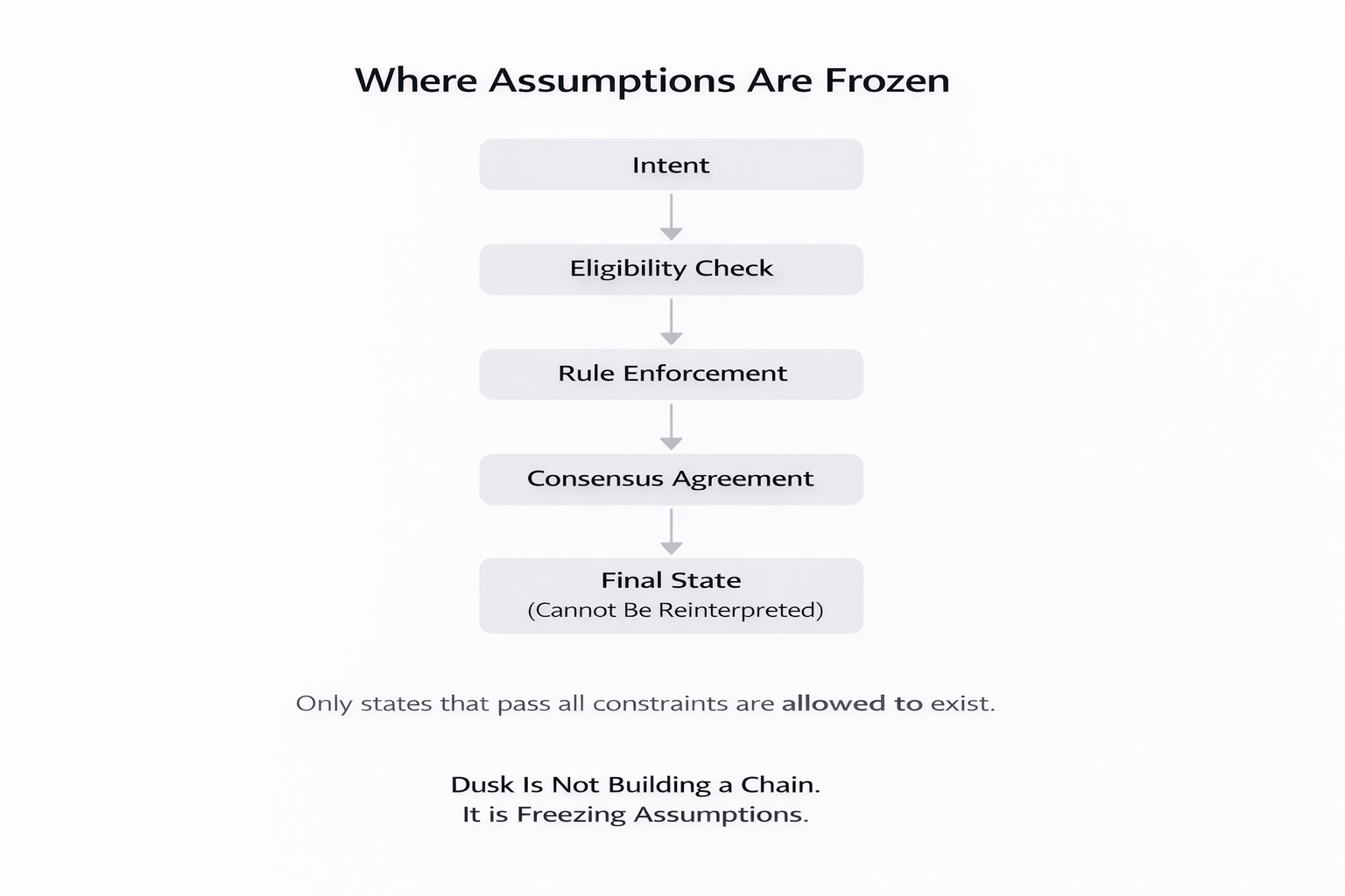Trong khi nhiều mạng Layer 1 tối ưu hóa cho khả năng thích ứng và linh hoạt sau thực hiện, Dusk có một lập trường khác. Nó coi việc thanh toán là một điểm cam kết, không phải là một điểm kiểm tra có thể được giải thích lại sau đó. Khi một trạng thái tồn tại, nó tồn tại vì hệ thống đã quyết định rằng nó nên như vậy. Không có mong đợi rằng ý nghĩa sẽ được thương lượng sau đó.