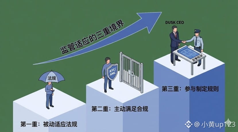 第三重:参与制定规则 DUSK达到了第三重境界——参与监管框架的制定。通过CEO在传统金融机构的关系,DUSK能够深入了解监管者的真实关切,并用技术手段提供解决方案。这种"监管共建"的模式,让DUSK从一个被监管者变成了监管生态的积极参与者。