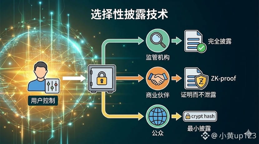 满足复杂合规场景 机构面临的是复杂的合规场景:需要向监管机构披露某些信息,需要向审计机构提供证明,需要向商业伙伴展示资质。DUSK的选择性披露可以针对不同对象设置不同的披露级别,满足这些复杂需求。