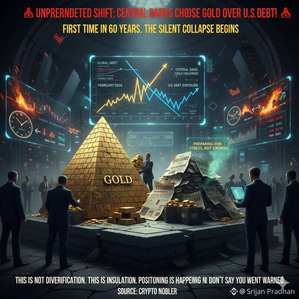 For the first time in decades, something quietly historic is unfolding beneath the surface of global markets, and most people aren’t paying attention. Central banks are no longer behaving the way public narratives suggest. While investors are told to focus on growth, diversification, and soft landings, the institutions that sit at the core of the financial system are repositioning for stress. They are reducing reliance on sovereign debt, increasing exposure to physical gold, and preparing for a world where trust in paper promises matters less than control over real collateral. This is not a political signal and not a short-term trade. It is a structural shift. Government bonds have long been the backbone of global liquidity, used as collateral, leverage, and balance-sheet support across banks, funds, and governments. When confidence in that backbone weakens, instability does not begin with panic or headlines—it starts with silent reserve adjustments. History shows this pattern clearly. Before inflationary shocks, credit crises, and liquidity freezes, institutions move first. Public awareness always comes later. Today’s environment reflects rising debt pressure, tightening liquidity, geopolitical uncertainty, and a growing preference for assets with no counterparty risk. Once bonds begin to lose credibility, the sequence is predictable: credit tightens, margin stress spreads, forced selling accelerates, and risk assets reprice. Policymakers face a narrow path—ease and debase currency, or stay tight and fracture credit. Neither outcome is clean. This is why preparation, not speculation, is underway. In such conditions, assets designed for scarcity and independence gain strategic relevance, including $BTC, not as a trade, but as a response to a system increasingly defined by fragility. By the time this shift becomes obvious to the majority, positioning will already be complete. Some will react. A few will already be ready.
