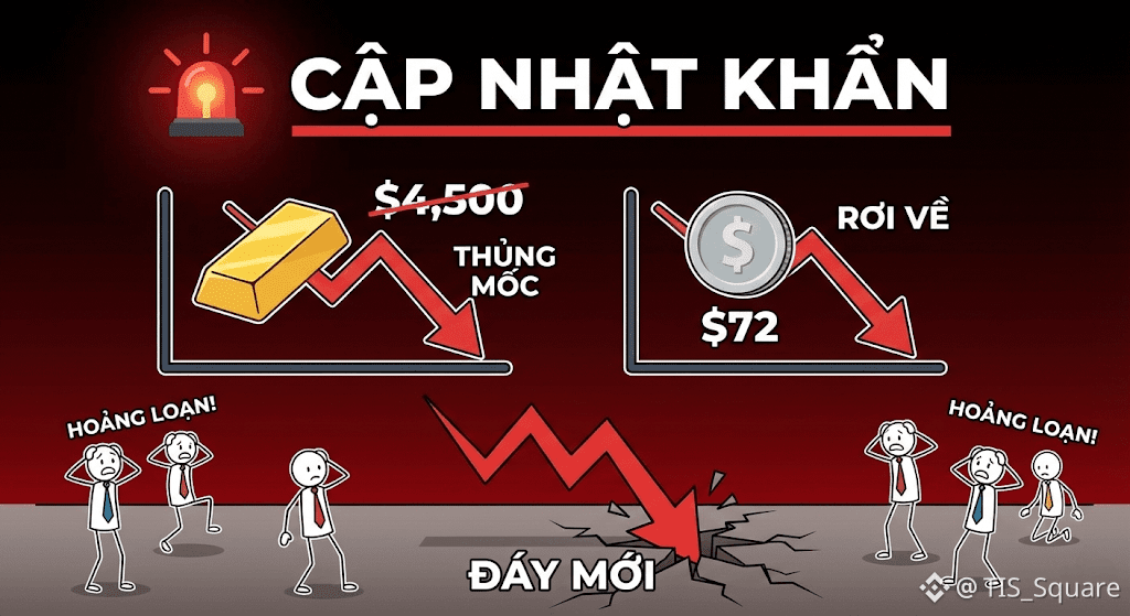Việc Vàng rơi về $4,444 và Bạc về $72 cho thấy thị trường vẫn đang trong giai đoạn Dò đáy.