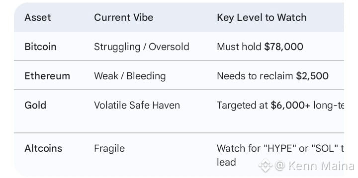 The BTC & ETH "Knife": Bitcoin has been struggling to hold the $78,000–$80,000 range. The market is terrified that the new Fed leadership will aggressively shrink the balance sheet, which sucks liquidity out of "risk-on" assets like crypto. ETH has been hit even harder, falling over 50% from its peak.