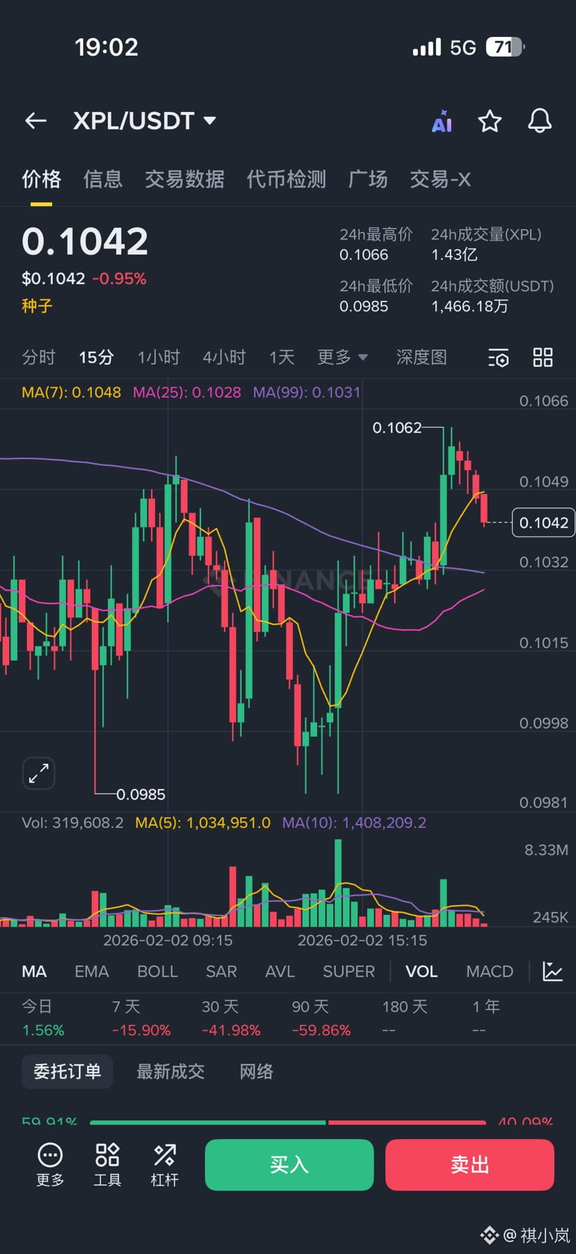 然而,Plasma的原生代币XPL的最近走势却呈现出明显的熊市特征。根据CoinMarketCap和CoinGecko数据,XPL当前价格约为0.10美元,24小时内下跌4.81%至8.69%,7天内下跌11.12%至16.59%,30天内更是暴跌44.8%至48.99%。其历史最高价出现在2025年9月,为1.68美元,而最近的最低价已触及0.098美元,距离峰值下跌超过93%。这种下行趋势可能受整体加密市场低迷影响,包括比特币和以太坊的波动,以及投资者对新Layer 1项目的观望态度。尽管交易量保持在7000万美元以上,市值约2.2亿美元(排名第147至231位),但卖压明显,短期内缺乏强势反弹信号。XPL的流通供应量为21.5亿,总供应上限为100亿,主要用于网络安全、质押和交易费用(USDT转账除外,可免gas费)。