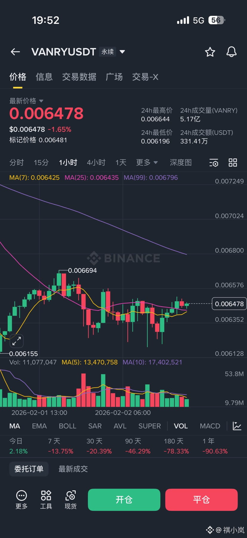 最近VANRY的价格嘛,说实话有点拉胯。截至2026年2月初,大概就在0.0063-0.0065美元晃荡,24小时也就波动2-3%,这一周下来跌了10%多。整个加密市场情绪低迷,它也跟着遭殃。不过项目基本面其实没停,年初刚推了AI原生基础设施层,还强调订阅模式的工具部署,Neutron那边有交易燃烧机制,理论上能制造点通缩压力。如果后面AI应用真在游戏、企业RWA这些地方落地多起来,VANRY的需求肯定会反弹。历史上它最高冲到过0.37美元,现在算是低位趴着蓄力,好几家预测机构觉得2026年底有机会回到0.01-0.016美元,翻个80%+也不是梦。