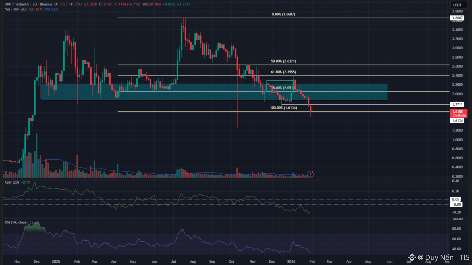 🔶Tin buồn cho $XRP là mốc hỗ trợ sinh tử $1.77 đã chính thức bị thủng. Ngay cả cái đáy của tháng 4/2025 ở mức $1.61 hiện cũng đang bị đe dọa.