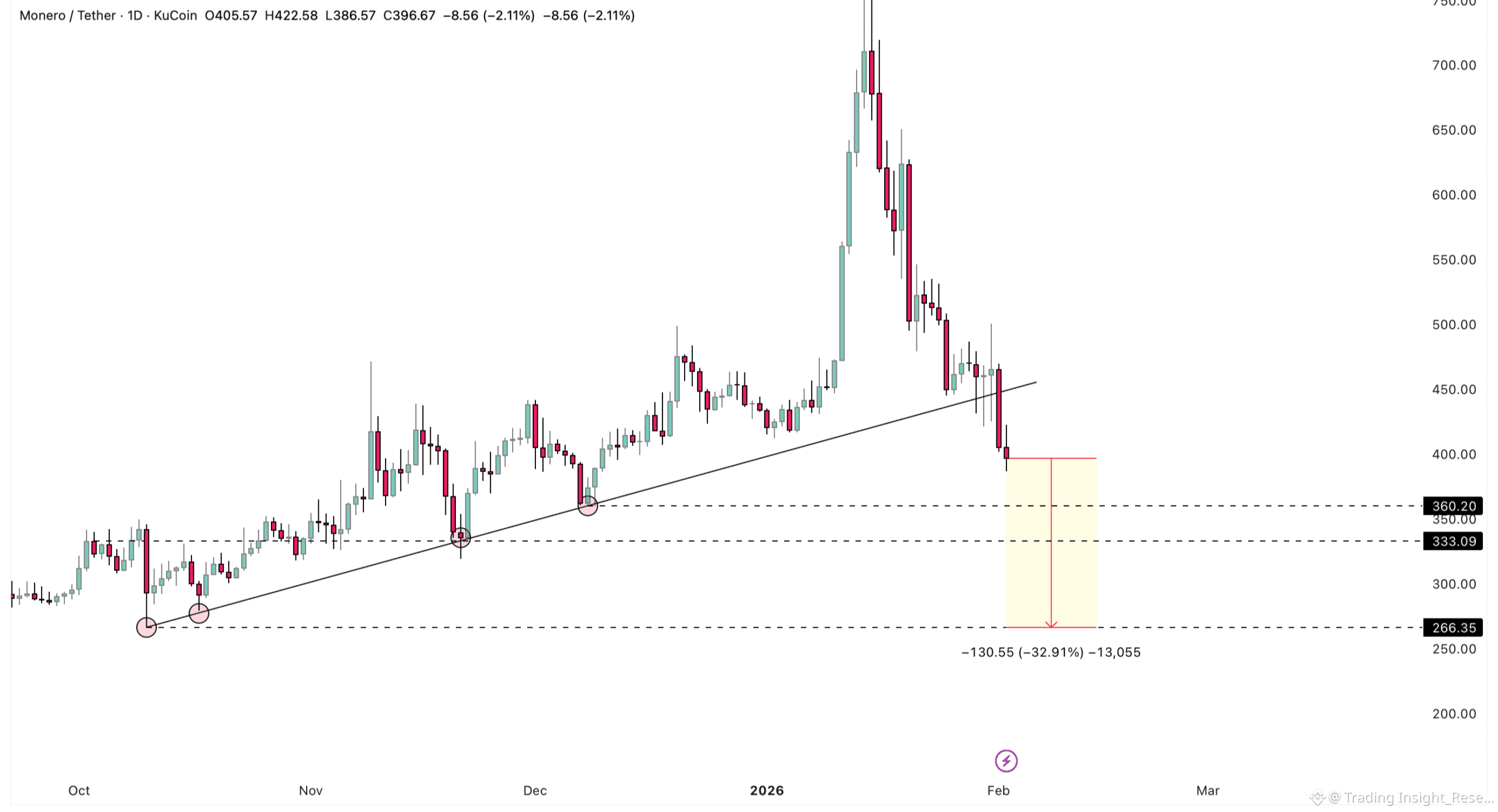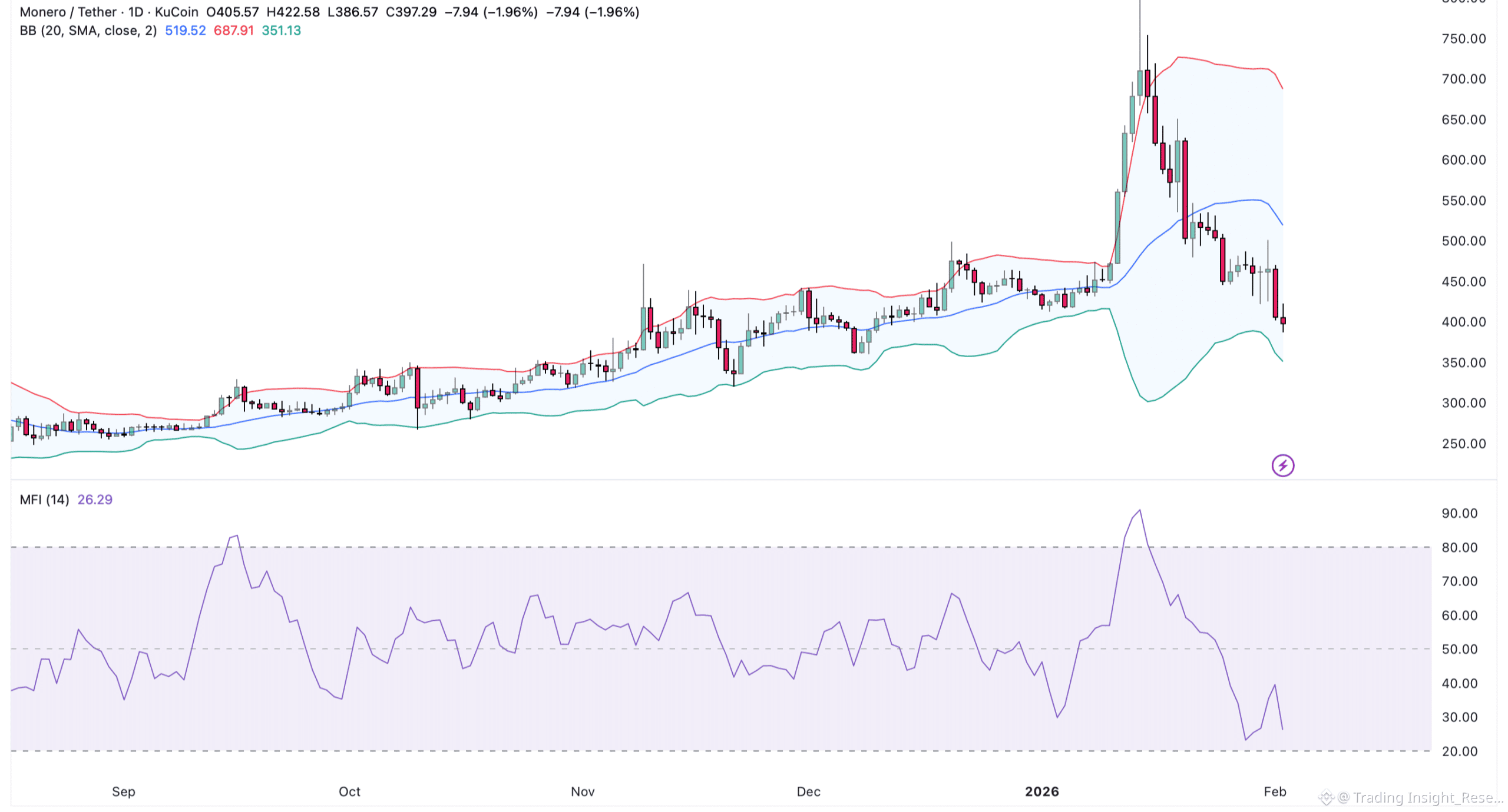 $XMR đang đổ máu. Đồng coin riêng tư hàng đầu đã lao dốc 12% trong 24 giờ khi câu chuyện về quyền riêng tư phai nhạt và nhà đầu tư chuyển hướng sự chú ý. Vị thế Long cố chấp trên thị trường phái sinh đã va phải một cú gãy cấu trúc kỹ thuật nghiêm trọng.