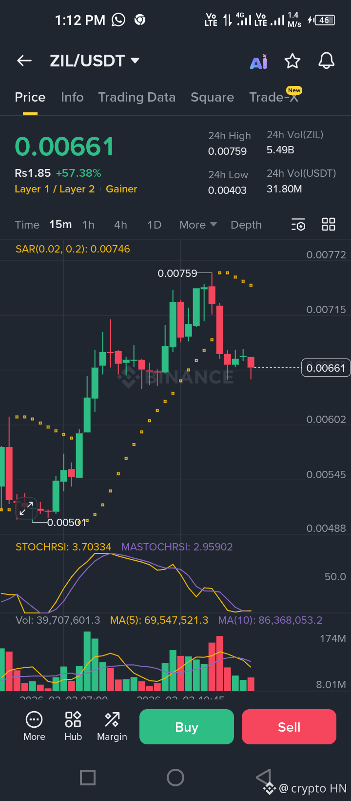#ZIL broke above the previous consolidation zone around 0.0050–0.0052