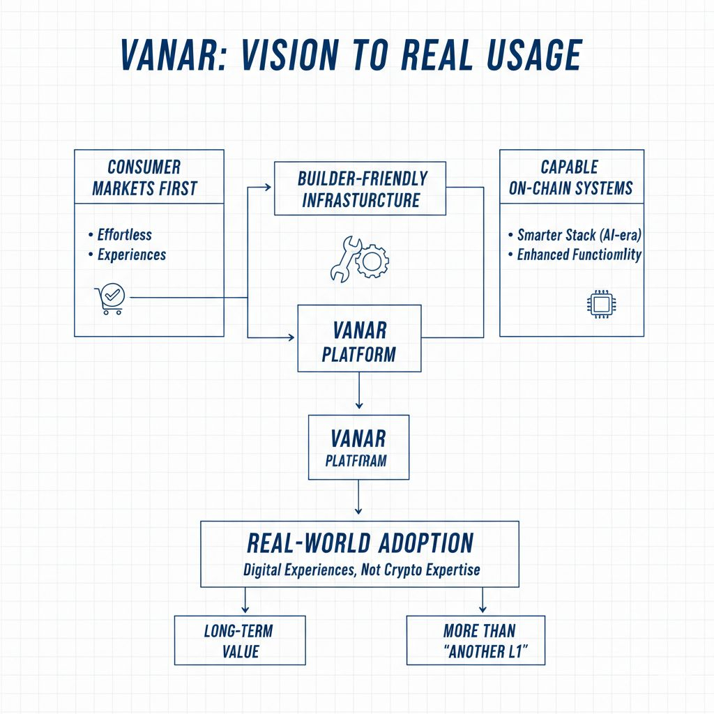 Nếu Vanar tiếp tục thực hiện theo hướng mà nó đang chỉ dẫn—thị trường tiêu dùng trước, nhấn mạnh mạnh mẽ vào cơ sở hạ tầng thân thiện với nhà phát triển, và một stack nhằm làm cho các hệ thống trên chuỗi trở nên có khả năng hơn—thì giá trị dài hạn của dự án trở nên dễ hiểu hơn, vì nó không còn là “một L1 khác” mà trở thành một nền tảng được thiết kế cho loại trải nghiệm kỹ thuật số có thể mang lại hàng triệu người dùng mà không yêu cầu họ chuyển đổi thành các chuyên gia tiền điện tử.