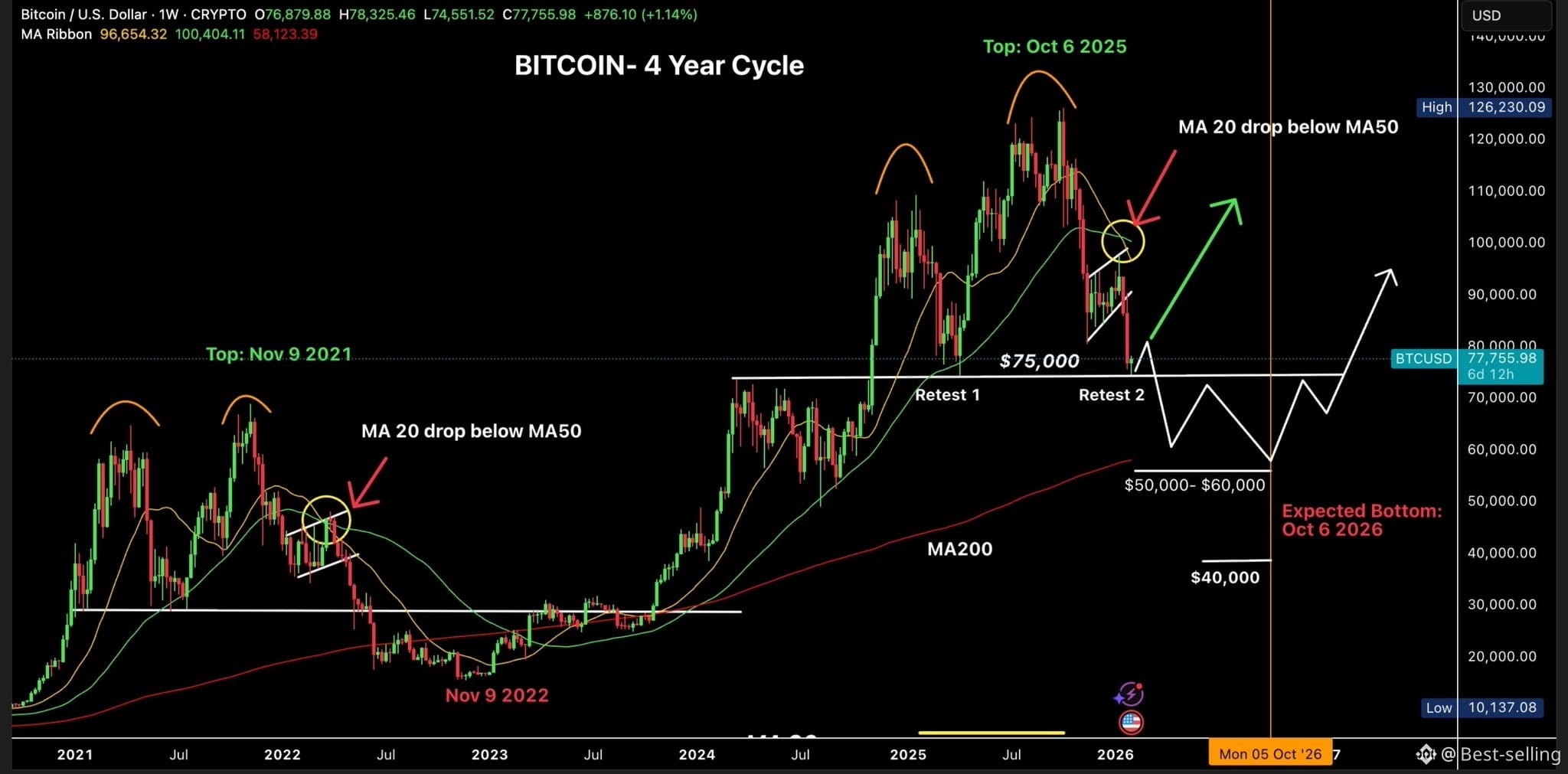 If that happens, the $50k–$60k zone becomes the first downside area because it is a major psychological zone and a common reset range after a high-to-low correction.