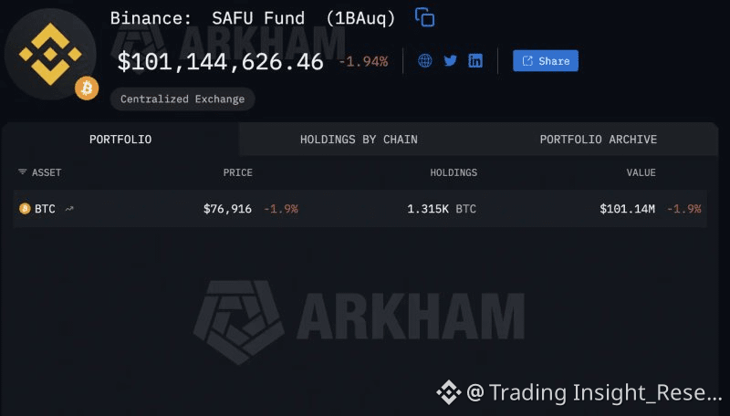 Binance đã chuyển đổi 100 Triệu USD thành ~1,315 BTC với mức giá trung bình $77,409.
