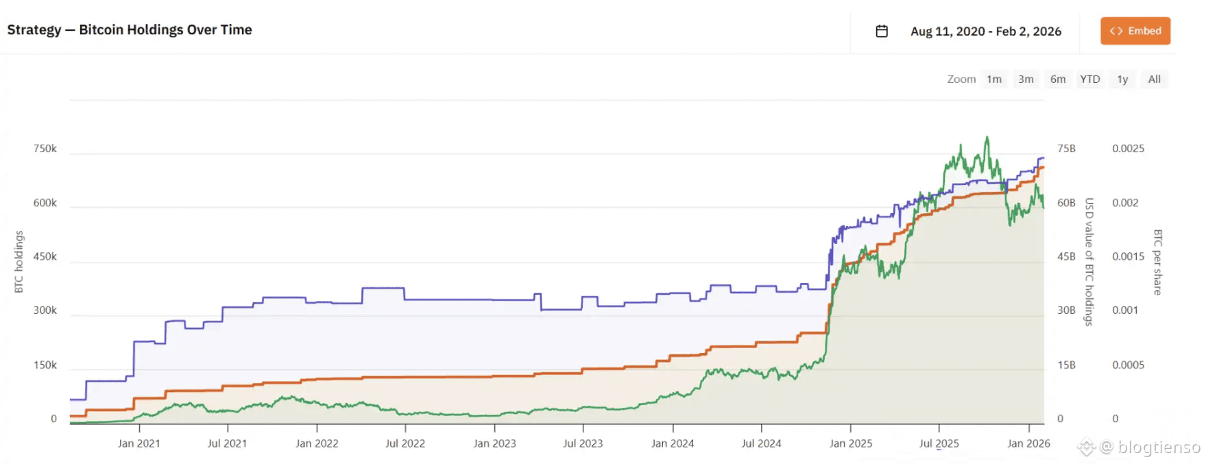 Tính đến ngày 2 tháng 2, Strategy, một người tích trữ Bitcoin nổi tiếng, nắm giữ tổng giá trị khoảng 54,2 tỷ đô la, bao gồm 712.647 BTC, với chi phí nắm giữ trung bình khoảng 76.040 đô la.