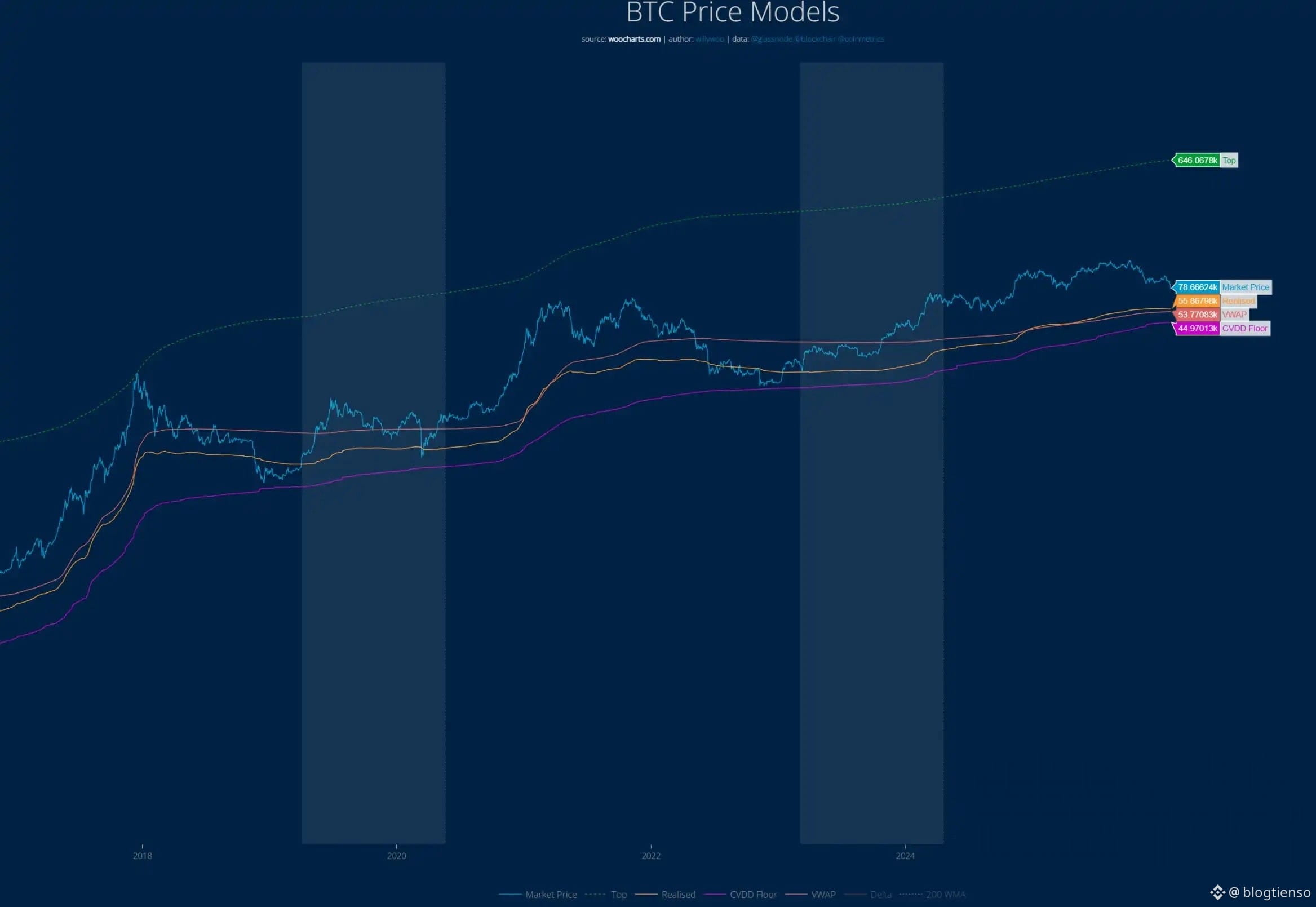 Mô hình CVDD, được phát triển bởi nhà phân tích nổi tiếng Willy Woo, cho rằng khi Bitcoin được chuyển từ một nhà đầu tư mua với giá 1 đô la sang một nhà đầu tư mới mua với giá 100.000 đô la, nhà đầu tư mới sẽ định giá những Bitcoin này ở mức giá sàn cao hơn.