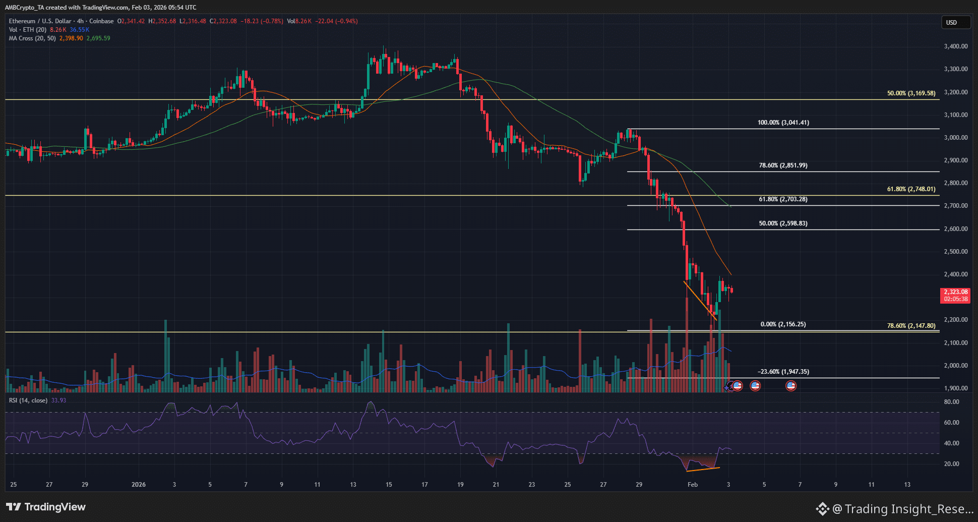$ETH đã thực hiện cú bật 6.58% lên $2,395 sau khi chạm đáy $2,156, được thúc đẩy bởi phân kỳ dương RSI trên khung H4. Tuy nhiên, bất chấp nến xanh, phe Gấu vẫn đang kiểm soát chặt chẽ cuộc chơi ngắn hạn.