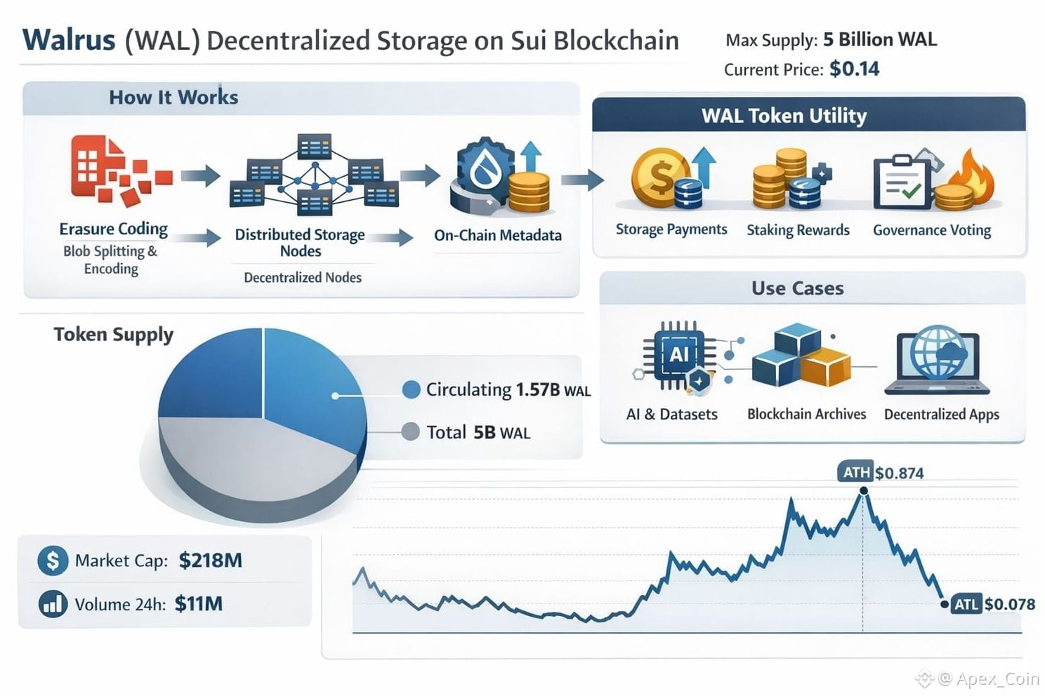 In conclusion, Walrus (WAL) is more than just a decentralized storage protocol; it is a foundational component of the emerging Web3 infrastructure. By combining Sui blockchain’s performance, advanced erasure coding, a well-aligned token economy, and developer-centric tools, Walrus addresses one of the most critical challenges in decentralized networks: storing and verifying large-scale data securely, efficiently, and economically. Its combination of technical innovation, economic design, and practical usability makes it an essential layer for developers, token holders, and the broader decentralized ecosystem, supporting the next wave of blockchain-native applications, NFTs, AI datasets, and