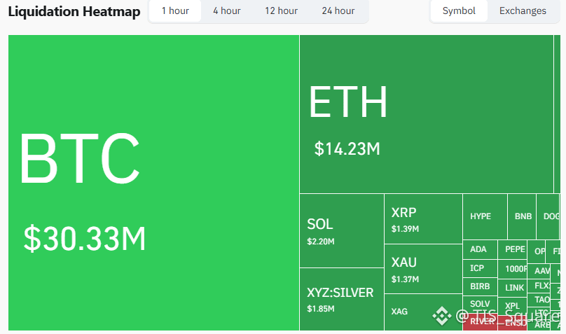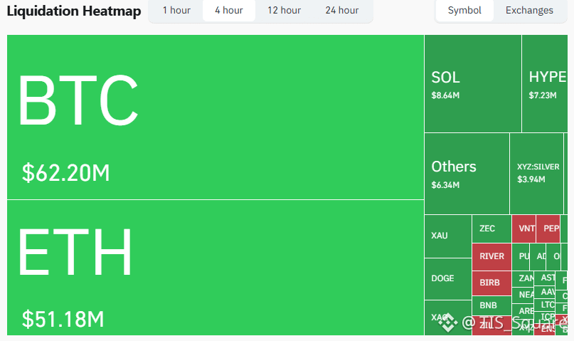 Điểm nóng 1 giờ qua: Sự tàn khốc thể hiện rõ nhất ở khung 1H gần nhất, khi thị trường sập mạnh khiến $60.30 Triệu USD lệnh Long bị thanh trừng, trong khi Short chỉ mất vỏn vẹn $1.65 Triệu USD. Đây là một cú Kill Long điển hình.