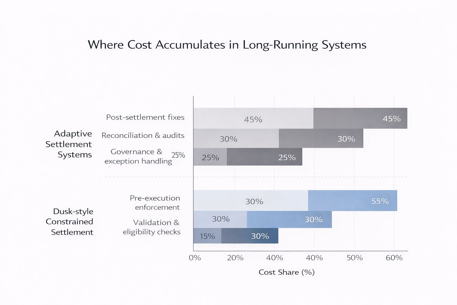 Trong các hệ thống tài chính truyền thống, hầu hết chi phí nằm ngoài chuỗi. Các nhóm tuân thủ. Xử lý ngoại lệ. Đối chiếu. Giải quyết tranh chấp. Những quy trình này tồn tại vì các hệ thống dung thứ các hành động đáng ngờ và sau đó dành thời gian để giải thích chúng.