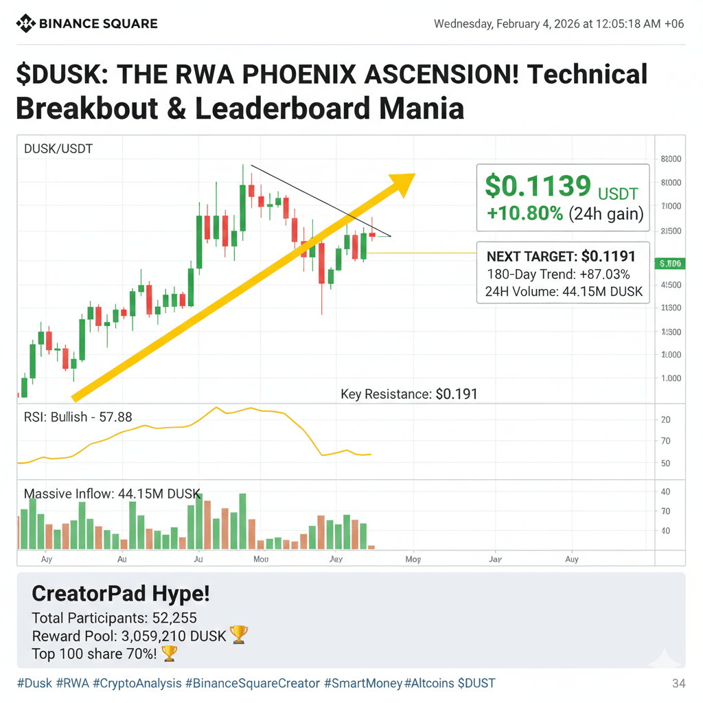 Hành Động Giá: DUSK hiện đang giao dịch ở mức $0.1139, cho thấy sự phục hồi mạnh mẽ +10.80% trong 24 giờ qua.