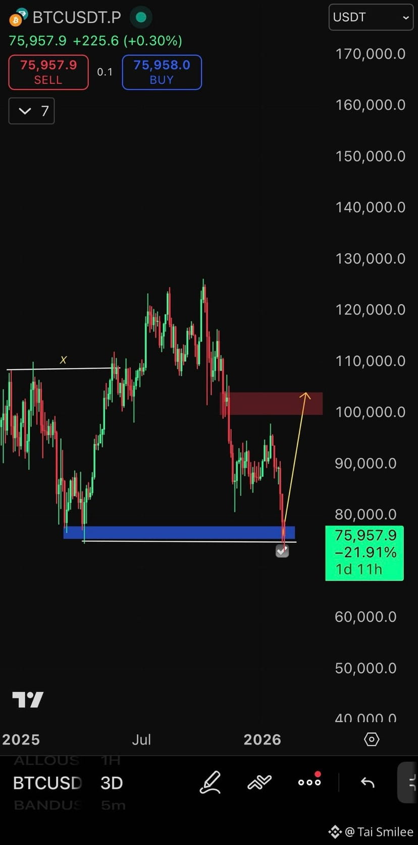 Bitcoin ( $BTC ) đã chạm vùng cầu / thanh khoản HTF quan trọng, và phản ứng mạnh đã xuất hiện ngay từ vùng đáy.