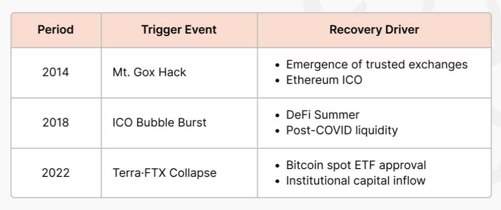 Lịch sử cho thấy crypto winter thường đi theo một kịch bản rất rõ: