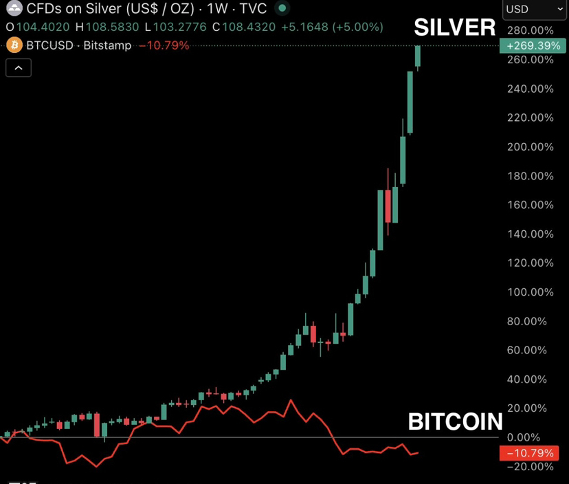 Trong khoảng 13 tháng, Silver đã tăng +270% trong khi Bitcoin giảm -11%.