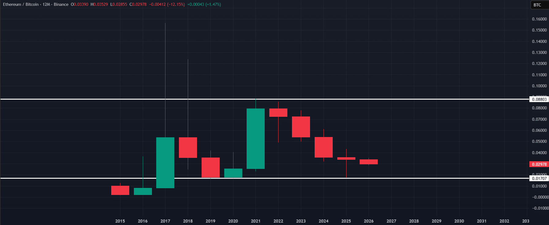 $ETH đang nằm trong vùng nguy hiểm. Sau khi đánh mất hỗ trợ quan trọng $2,100, tài sản này đang giao dịch ở mức tỷ trọng thấp chưa từng thấy kể từ năm 2021. Tỷ giá ETH/BTC đã giảm 12% từ đầu năm, đánh dấu xu hướng giảm liên tục từ 2022. Liệu ETH đang mất đi vị thế hầm trú ẩn?