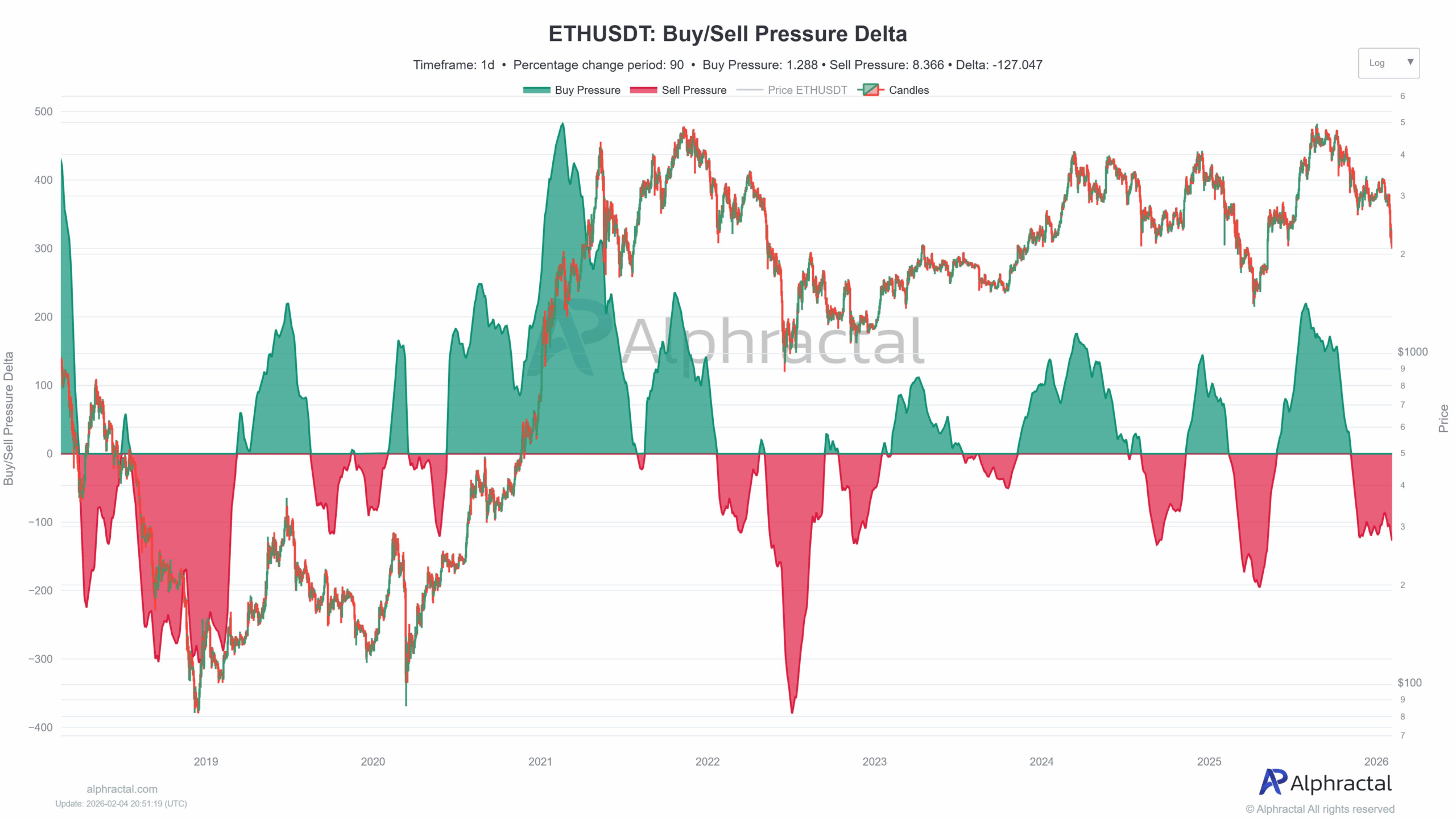Delta Mua/Bán của ETH đã chuyển sang màu ĐỎ lần đầu tiên kể từ Quý 2/2025, xác nhận phe bán đã nắm quyền kiểm soát.